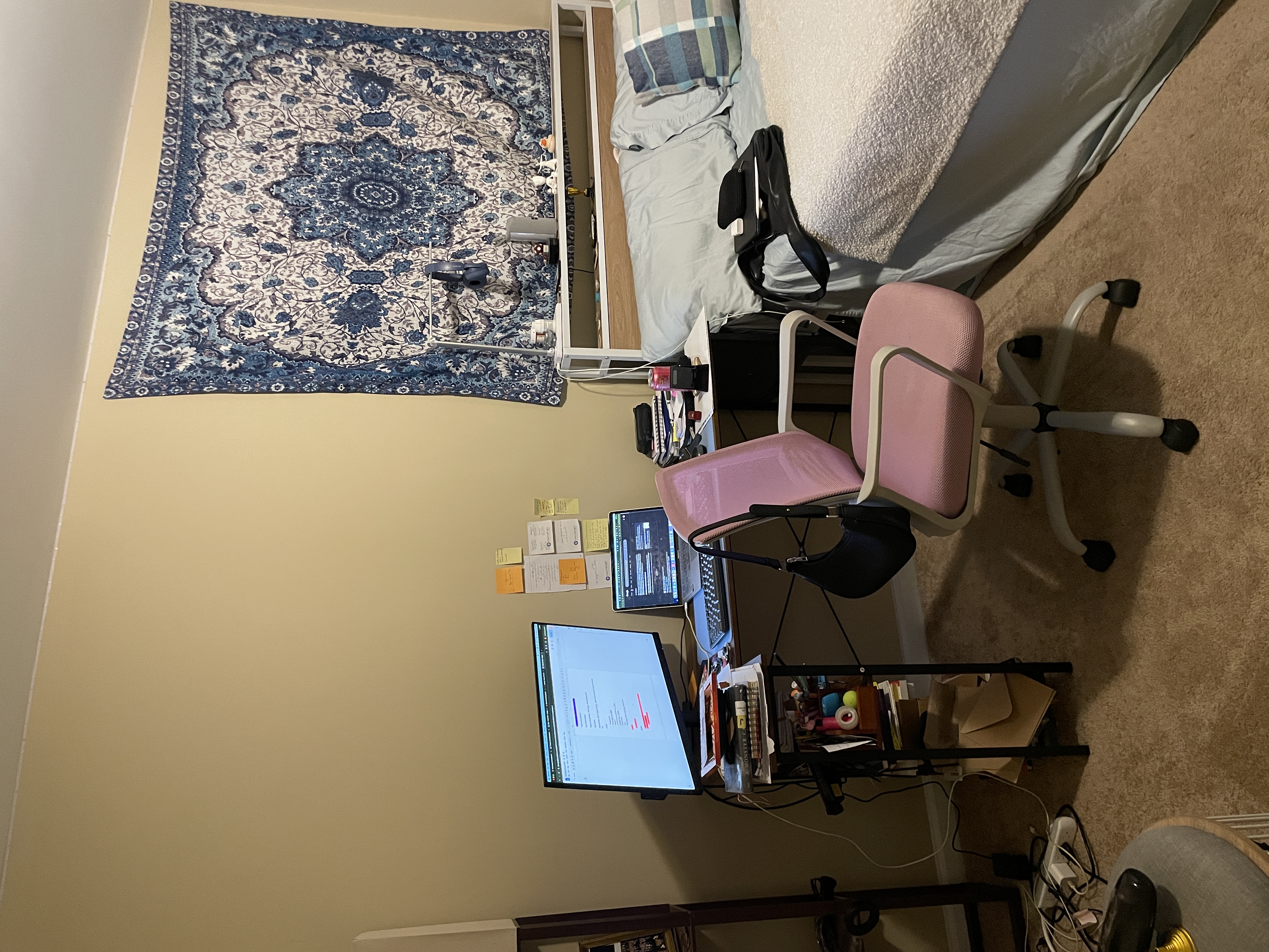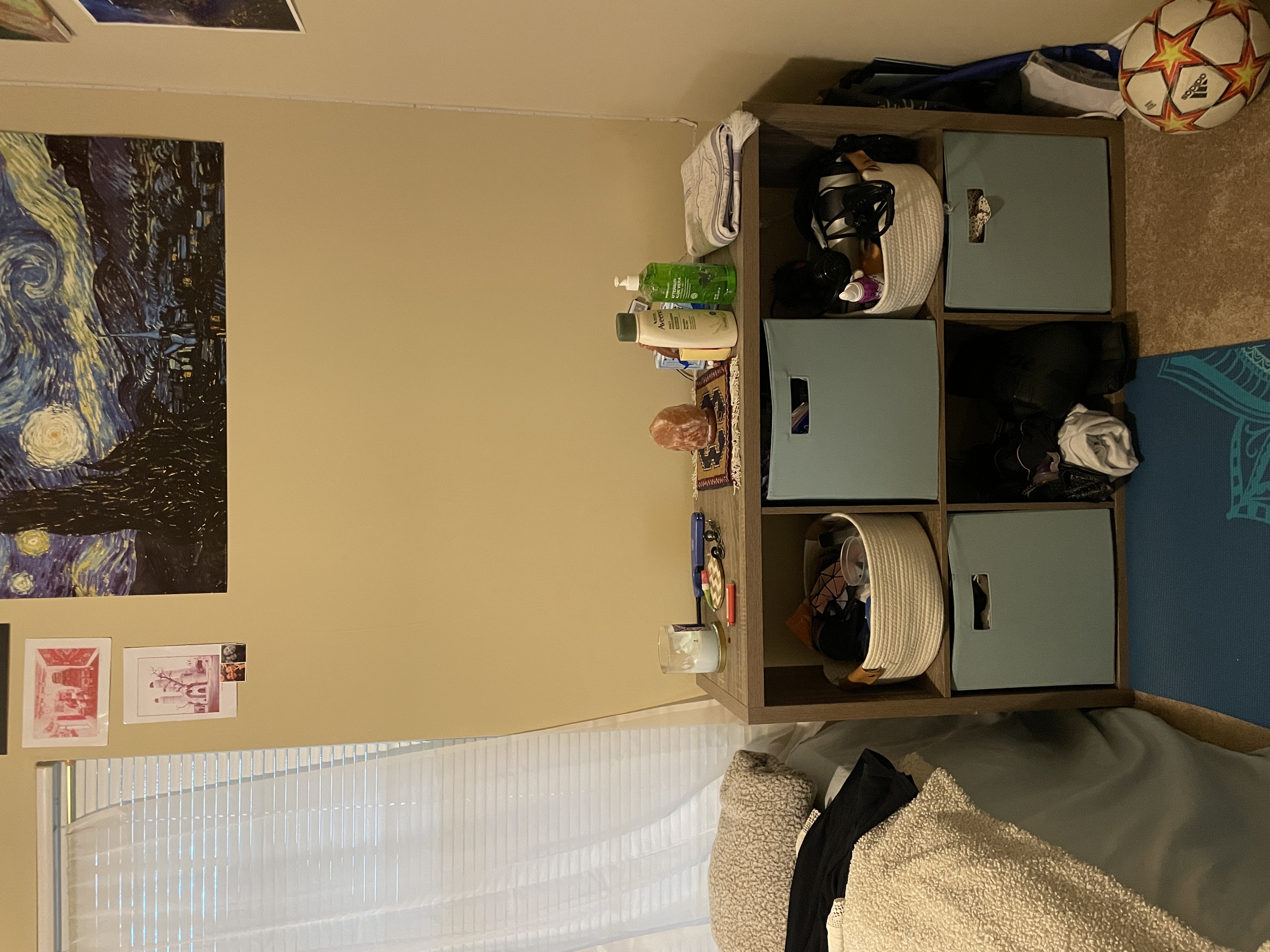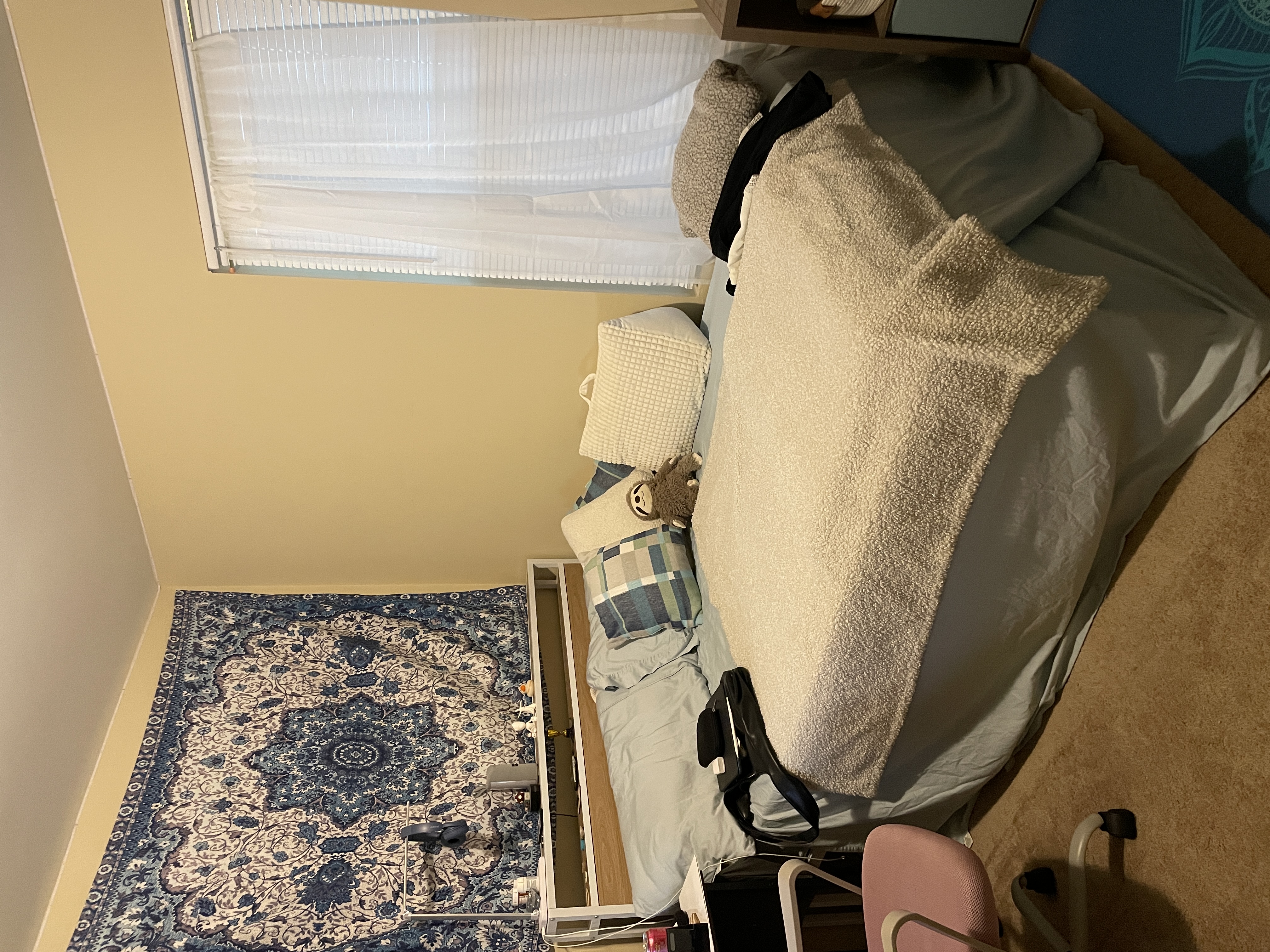 Queen-size bed (including mattress, pillows, and聽 available if desired), desk, chair, and shelf (with boxes and baskets included) for sale. Additional items, such as seating, a small makeup table, and a nightstand, will be included for free.